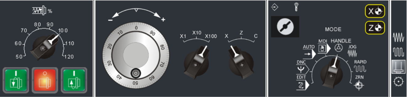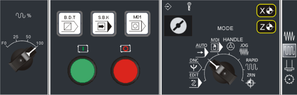 The operation panel function is the complete emulation based on the actual CNC machine operation panel.