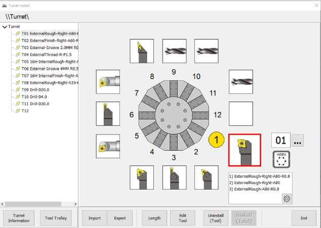 Turret setting: Tool install, modify, delete